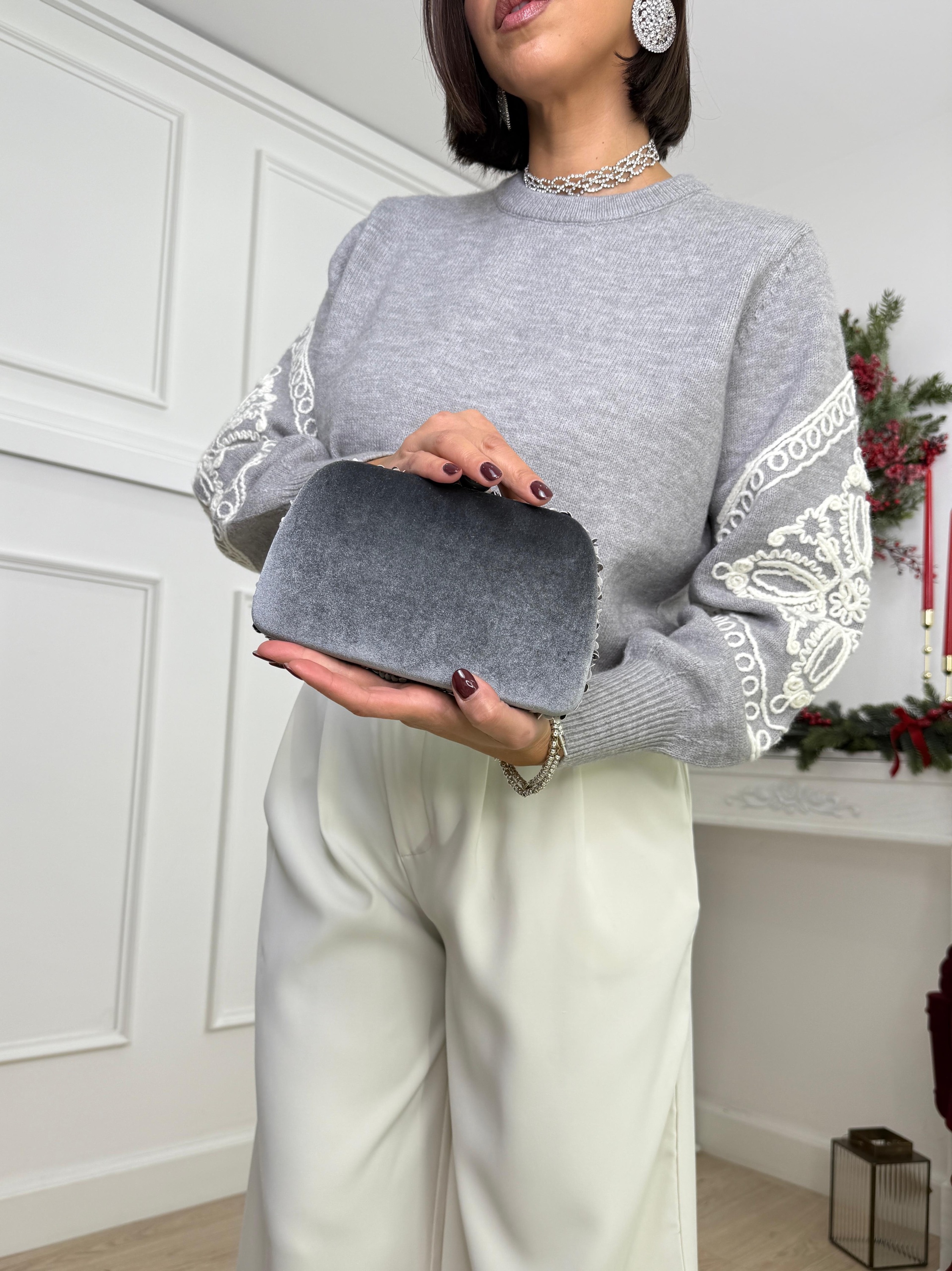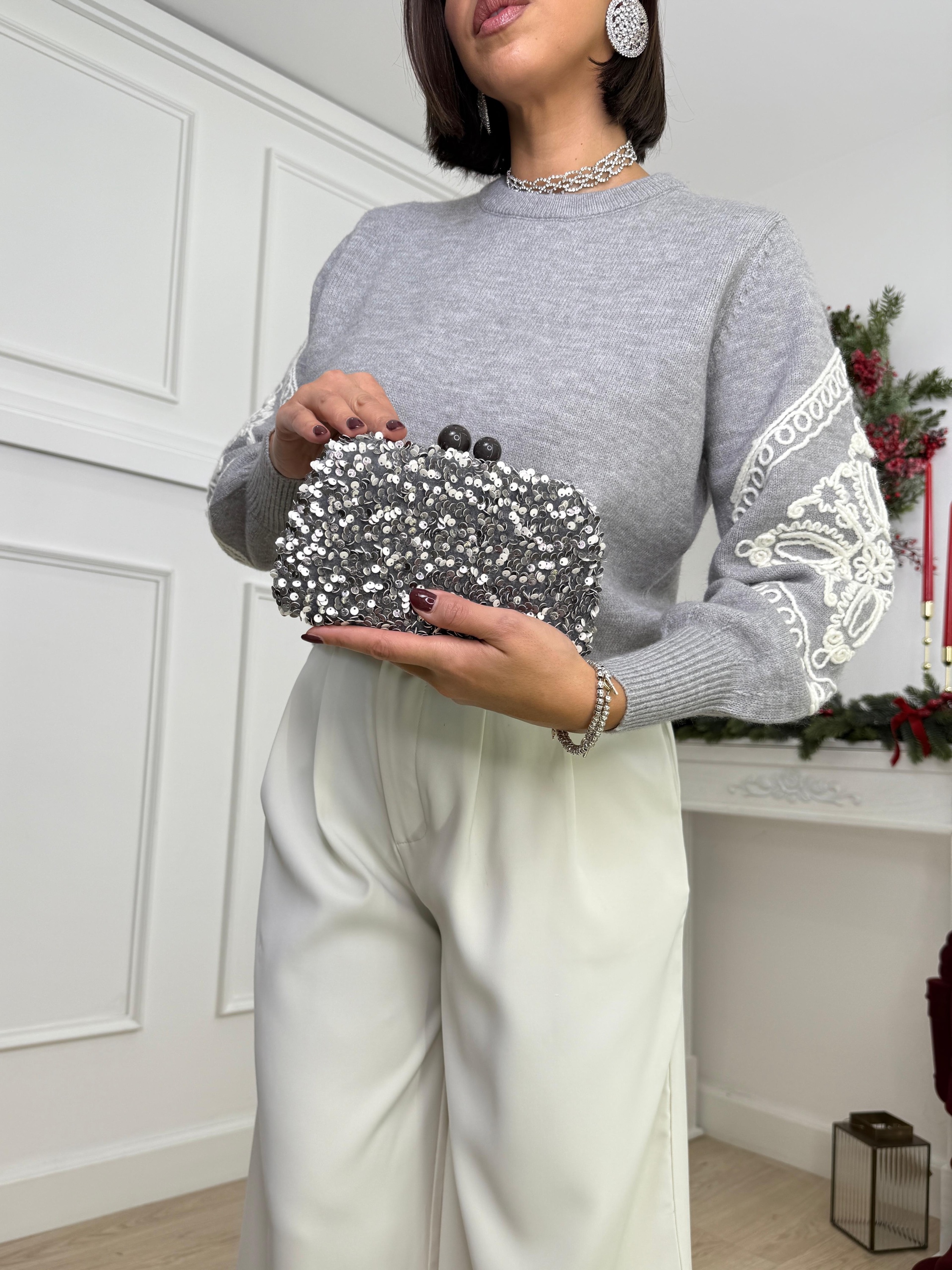 Clutch paillettes grigia